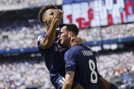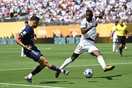 第23分鐘,皇馬的防線又被巴黎輕松擊穿,巴黎快速反擊,3人高速往前突,皇馬5人防守全被甩到身后,阿什拉夫高速插上禁區(qū)前沿精妙橫傳,巴黎后點(diǎn)已經(jīng)有2人在等球,皇馬這邊巴爾韋德才回防過來,魯伊斯接球晃開巴爾韋德后掃射得手,還沒到半個(gè)小時(shí),巴黎就已經(jīng)3:0領(lǐng)先3球,比賽也早早就失去了懸念。第39分鐘,巴黎左路反擊又造殺機(jī),克瓦拉茨赫利亞殺入禁區(qū)掃射遠(yuǎn)角,皮球稍稍偏出遠(yuǎn)端門柱。上半時(shí)補(bǔ)時(shí)階段,巴黎繼續(xù)制造殺機(jī),登貝萊似傳似射往門前吊,皮球飛向球門近端死角,庫爾圖瓦奮勇將球托出底線。